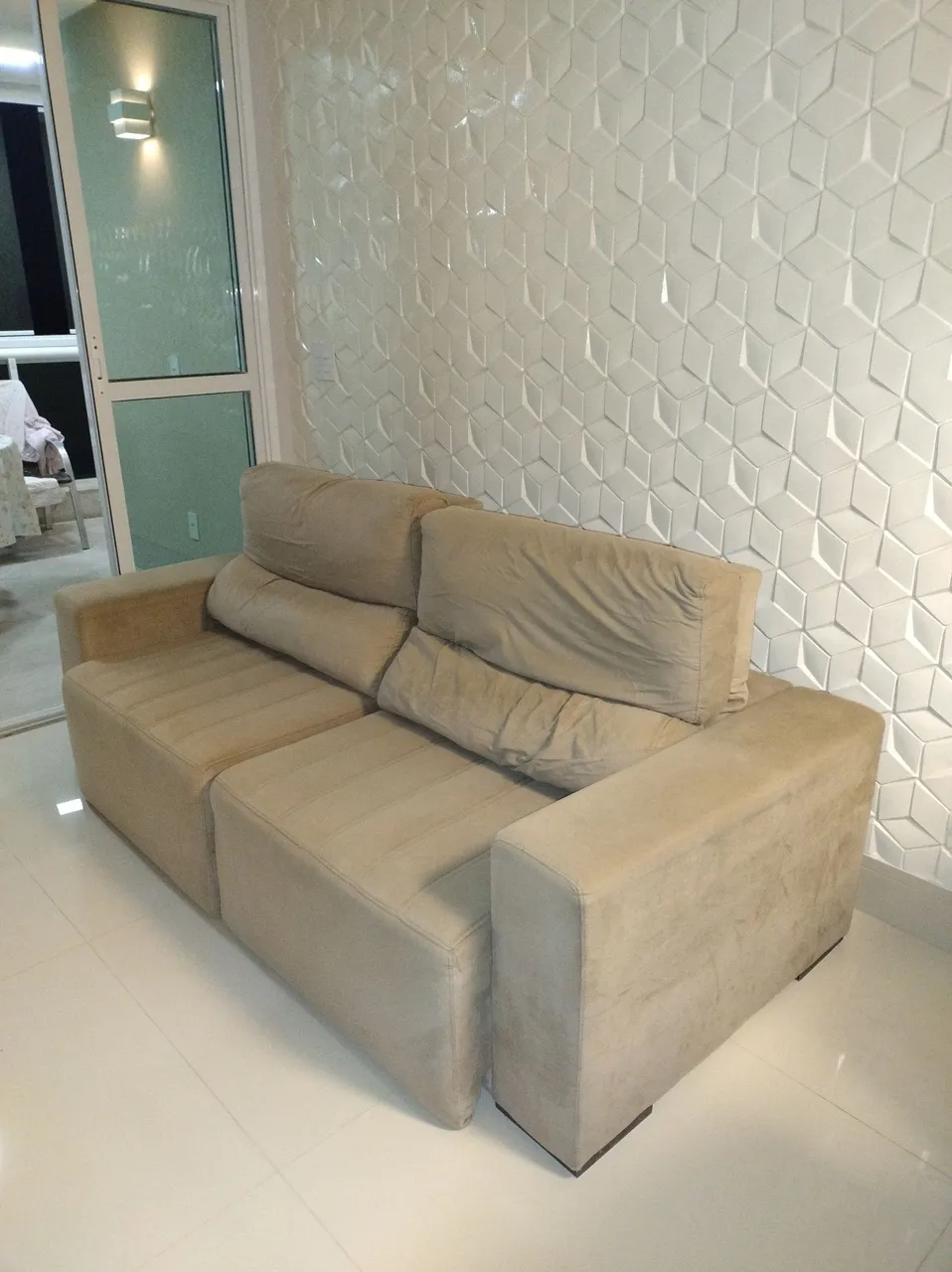 Sofá retrátil de 2 lugares, perfeito para relaxar e aproveitar seus momentos de descanso. Design moderno e confortável para sua sala.
