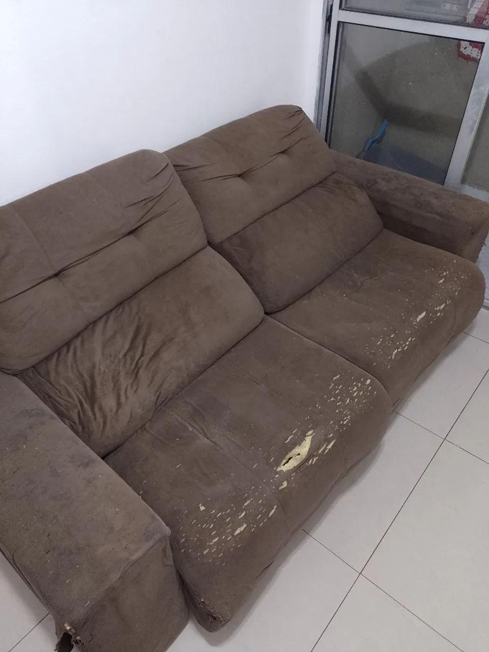 Este sofá está disponível para doação. Retirar no bairro Vista do Mestre. (Não entrego).