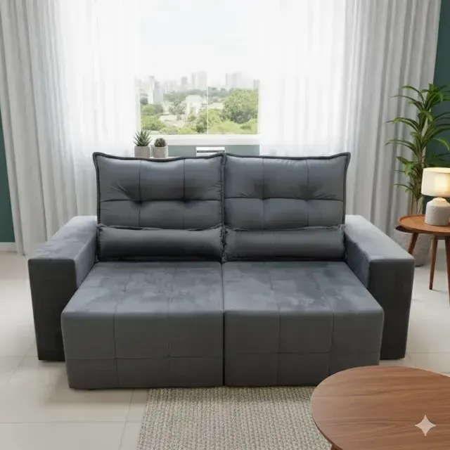 Apresentamos o sofá retrátil e reclinável Max, na elegante cor cinza veludo. Conforto e sofisticação para sua sala de estar. Design moderno e funcional, perfeito para relaxar e receber amigos.
