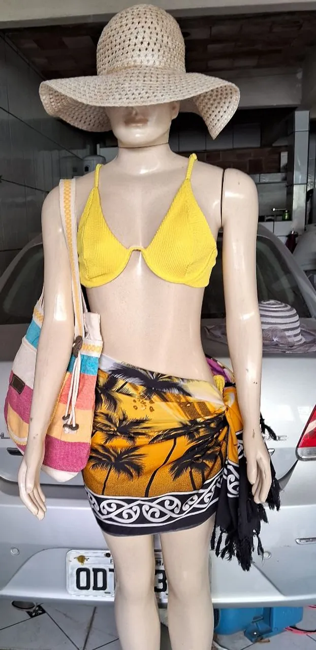 Biquini + canga R$:40,00 Biquini + canga + bolsa R$:55,00 Biquini + canga + bolsa + chapéu R$:65,00 Biquini tamanho M