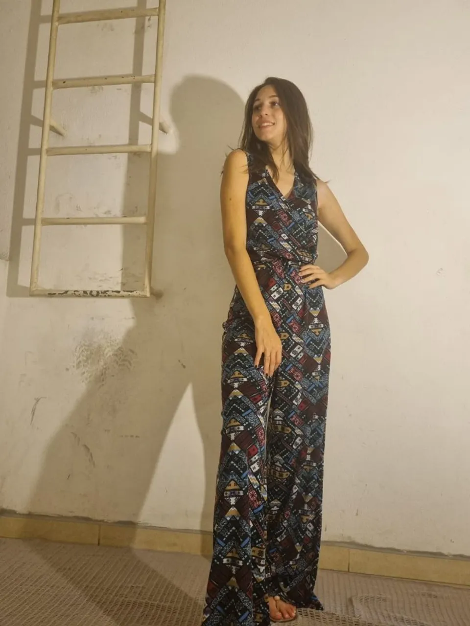 Lindo macacão com estampa vibrante. Perfeito para diversas ocasiões, combinando estilo e conforto. Uma peça única para você arrasar!