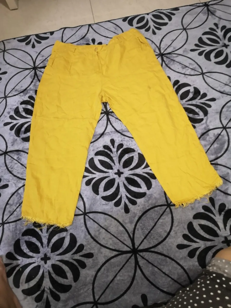 Calça amarela, perfeita para um visual moderno e estiloso. Confortável e cheia de personalidade, ideal para diversas ocasiões.