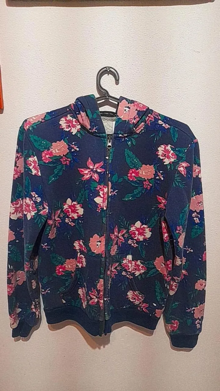 Lindo casaco com estampa floral, perfeito para um visual estiloso e confortável. Possui capuz e fechamento em zíper. Tamanho 16 anos Retirar no centro de Vitória