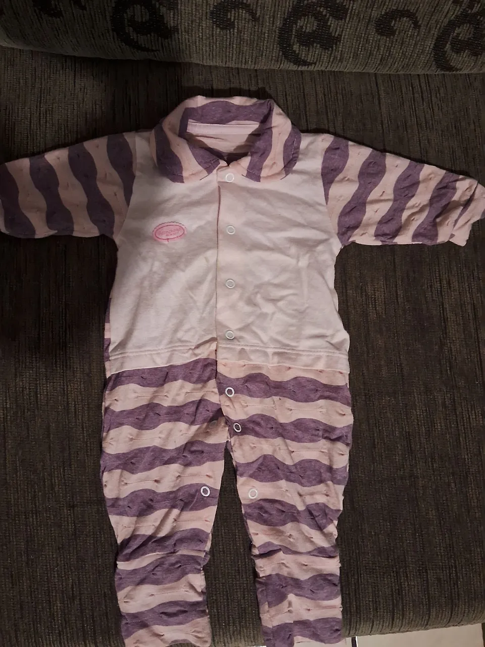 Macacão de bebê confortável com listras em tons de lilás e branco. Ideal para manter seu bebê estiloso e protegido.roupinha de bebê para menina perfeito estado