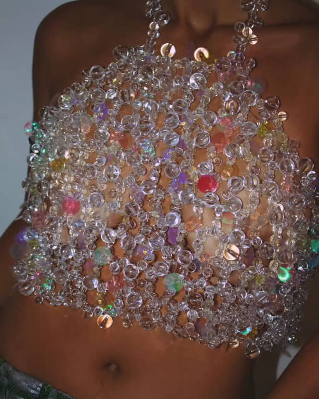 Top de bolhas tamanho M, perfeito para um visual despojado e estiloso. Detalhes únicos que agregam charme e personalidade ao seu look.