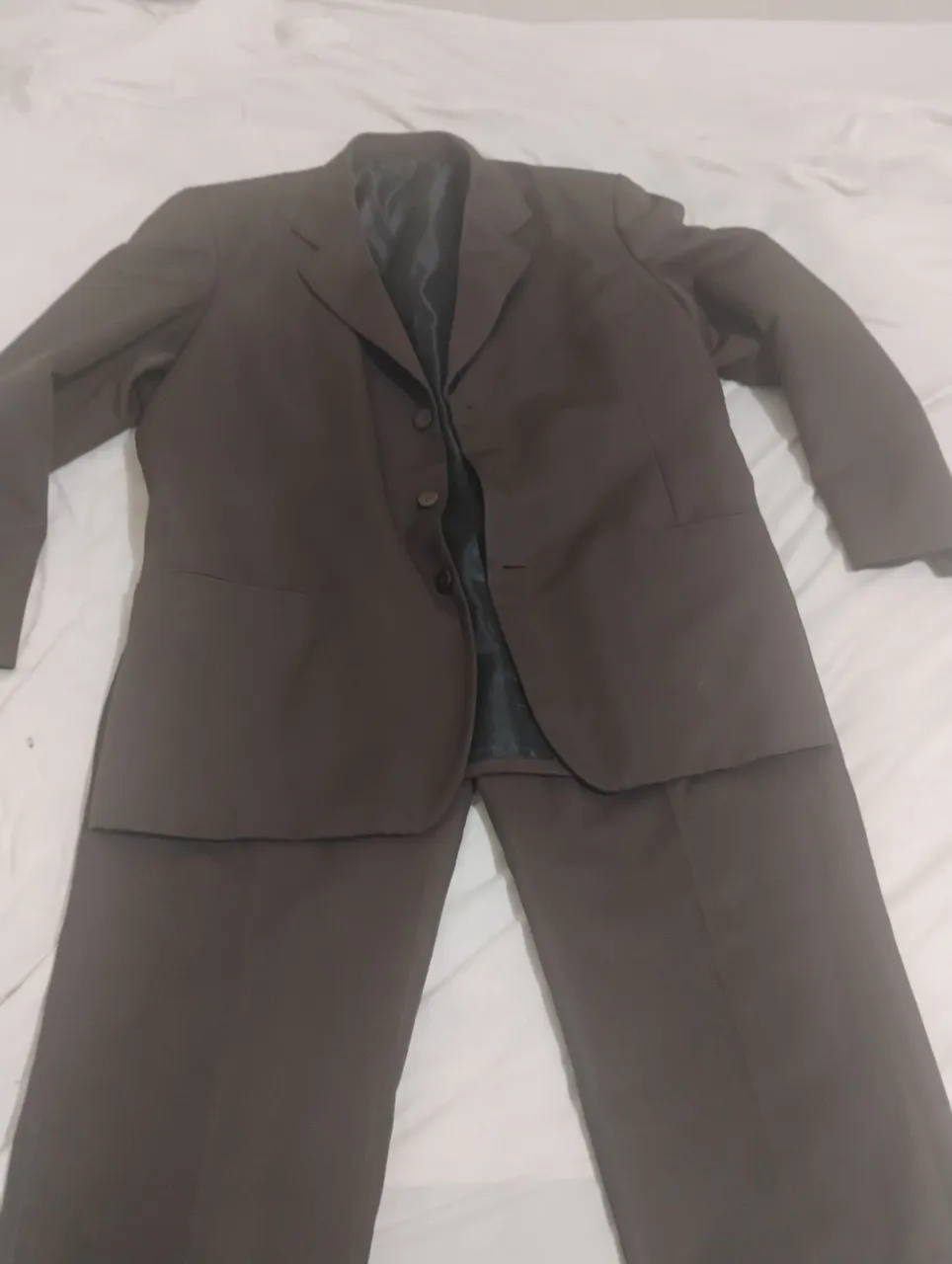Terno elegante na cor marrom, tamanho 52.calca 44.pouco uasado