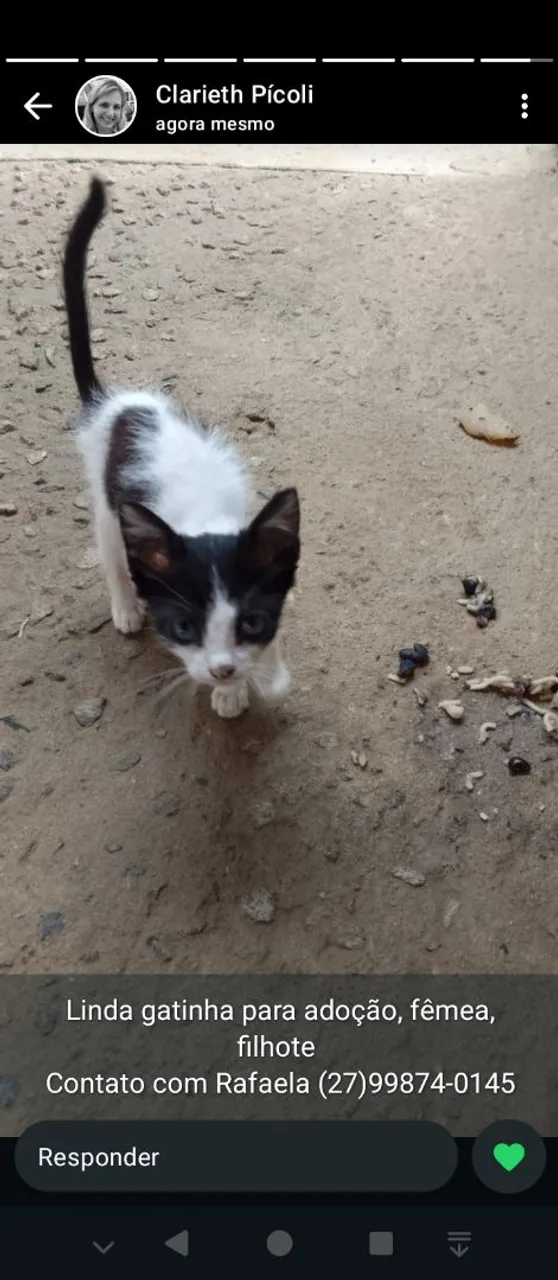 Doação de gatinha fêmea 3 meses super docil