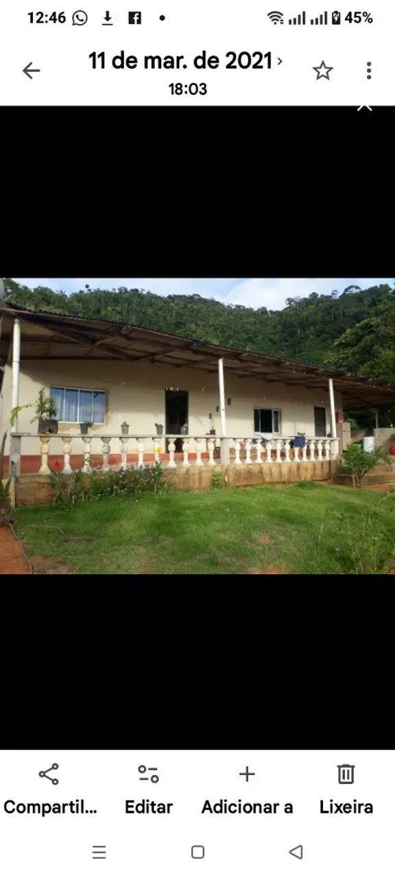 Sítio com casa grande, contendo 4 quartos e 4 banheiros, área gourmet, churrasqueira, lavanderia, piscina natural, bacia de peixes, águas naturais, árvores frutíferas como, laranjas, bananas, goiaba, jabuticaba, abacate, manga, pitanga, morango, maracujá, cacau, graviola, entre outros...