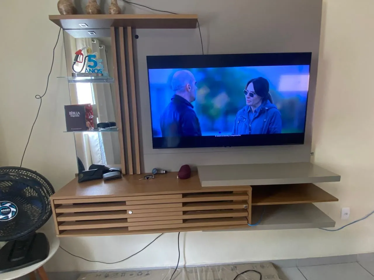 painel para TV de 55 polegadas! Design moderno, com espelho e luz