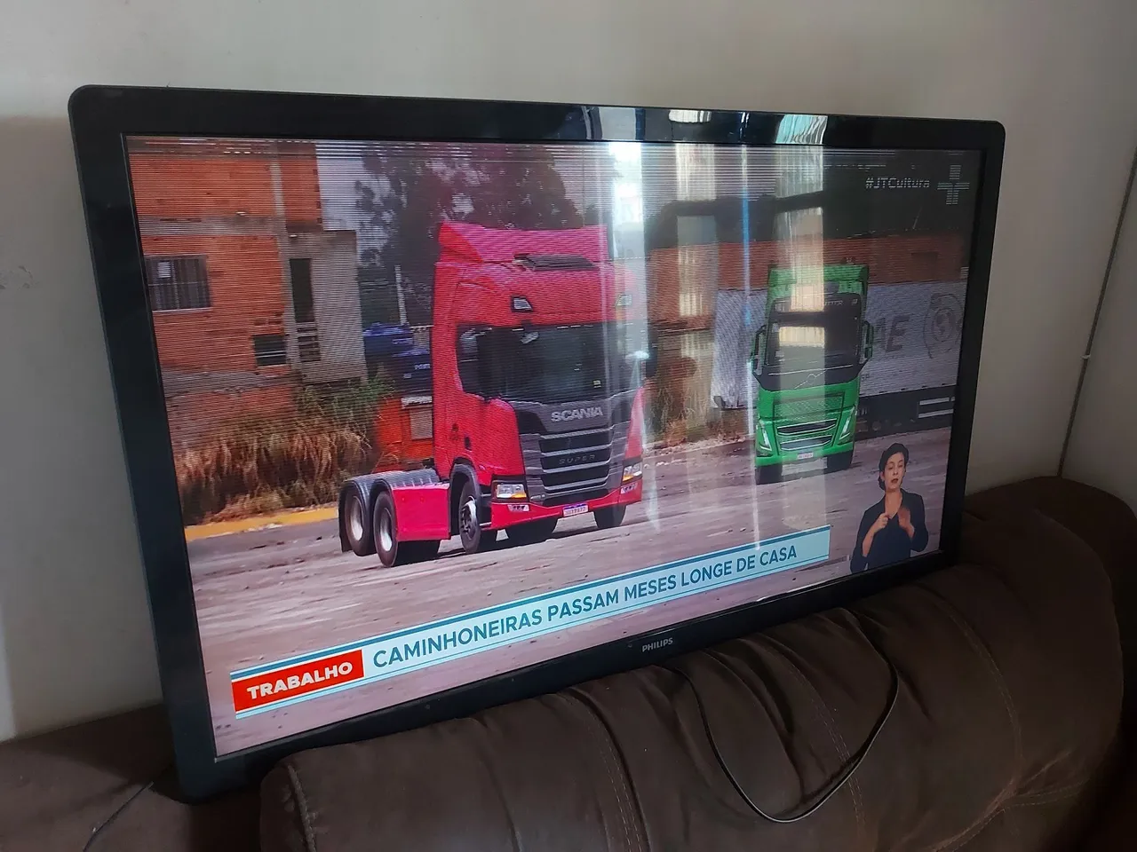 TV 42 polegadas funcionando perfeitamente dando somente umas listras de cima pra baixo , nada demais . Botões laterais todos funcionando perfeitamente A TV não tem pezinho e nem controle porém tem como colocá-la na parede pois tem os parafusos.