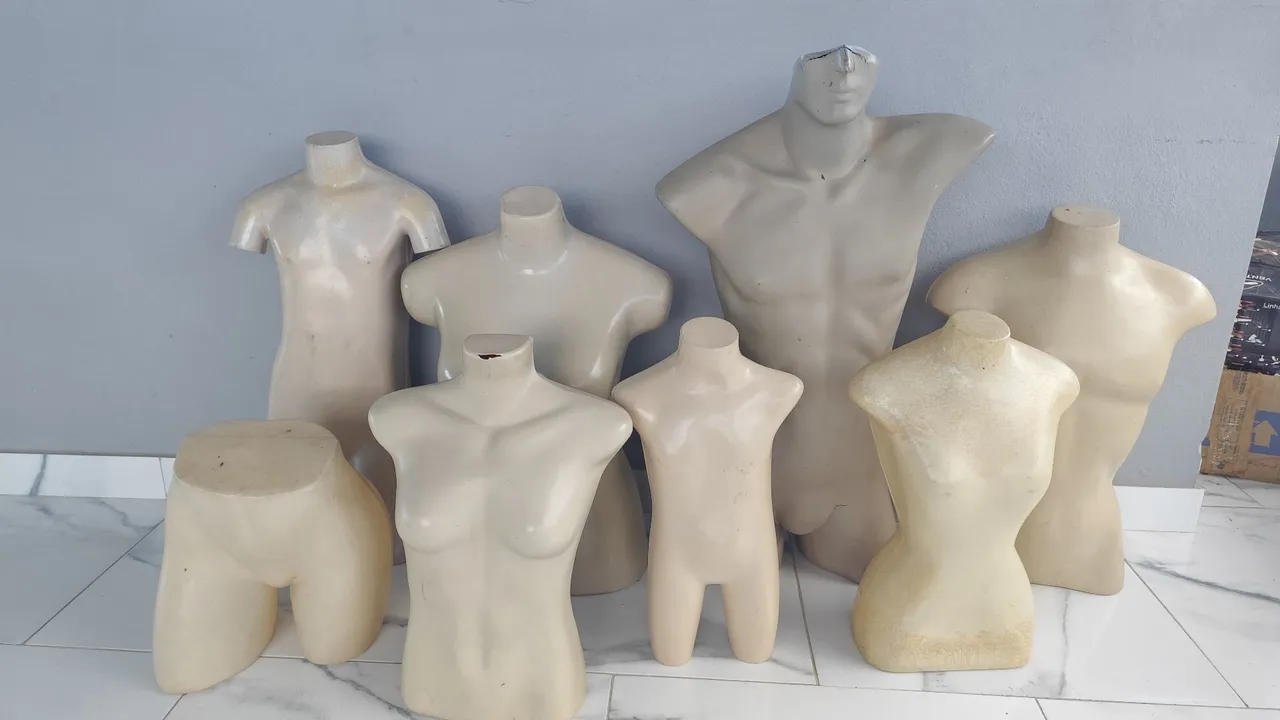 Renove a apresentação da sua loja com nossos manequins! Oferecemos uma variedade de modelos para atender às suas necessidades. Destaque suas roupas e atraia clientes com esses manequins de alta qualidade. 50 reais cada ou 300 tudo.