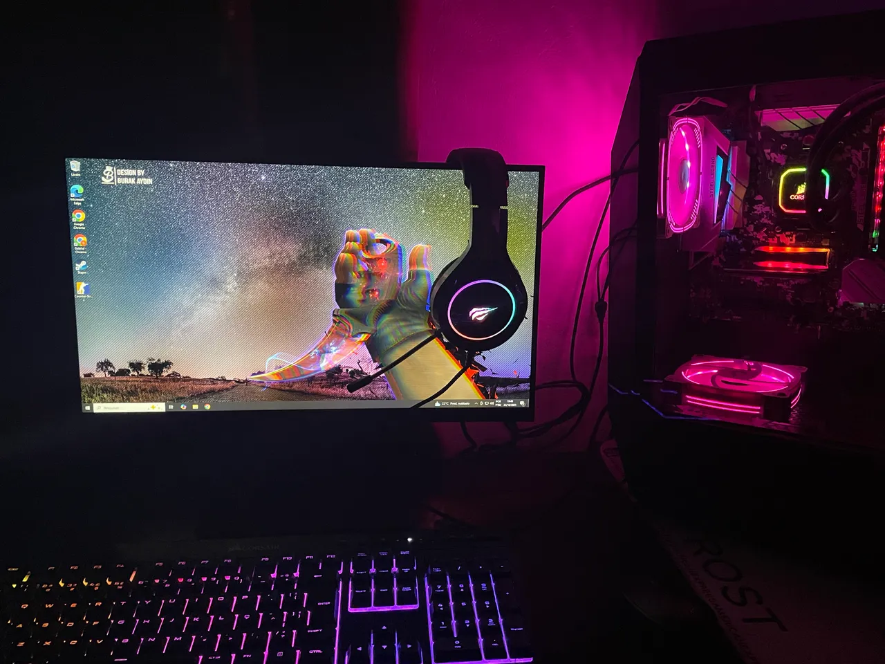 Vendo PC ? Pouco tempo de uso ? Water Cooler Corsair iCUE H100i RGB Pro XT, CW-9060043-WW Gabinete Gamer Pichau Seraph E RGB Lateral Vidro Temp, PGSE-0E1-RGB SSD Adata XPG Spectrix S40G 512GB M.2 2280 NVMe RGB, AS40G-512GT-C Memória Adata XPG Spectrix D80 RGB 16GB (2x8GB) DDR4 3200Mhz Vermelho, AX4U320088G16A-DR80 Fonte Corsair RMx Series RM550X 550W CP-9020177-WW 80 Plus Gold Processador AMD Ryzen 5 5600G 3.9GHz (4.4GHz Turbo) Placa-Mae ASRock B450M Steel Legend AMD AM4 DDR4 Valor R$ 3999