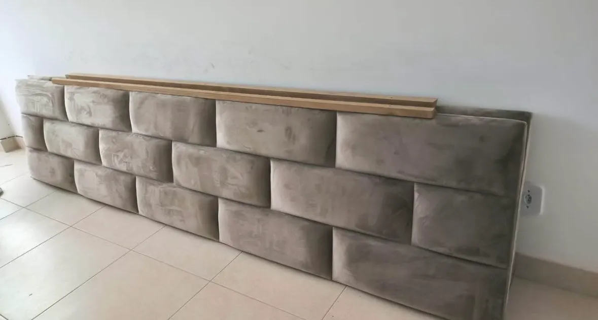 Cabeceira de cama queen size de tecido Suede cinza. Em ótimo estado !! Pouco usado!!