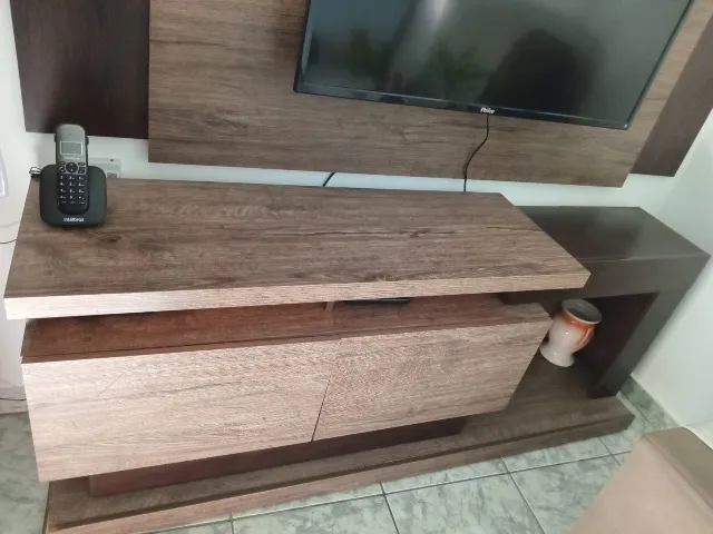 Transforme sua sala com este elegante painel e rack! Design moderno e funcional, perfeito para organizar sua TV e seus aparelhos eletrônicos. Aproveite o espaço e adicione um toque de sofisticação ao seu ambiente.