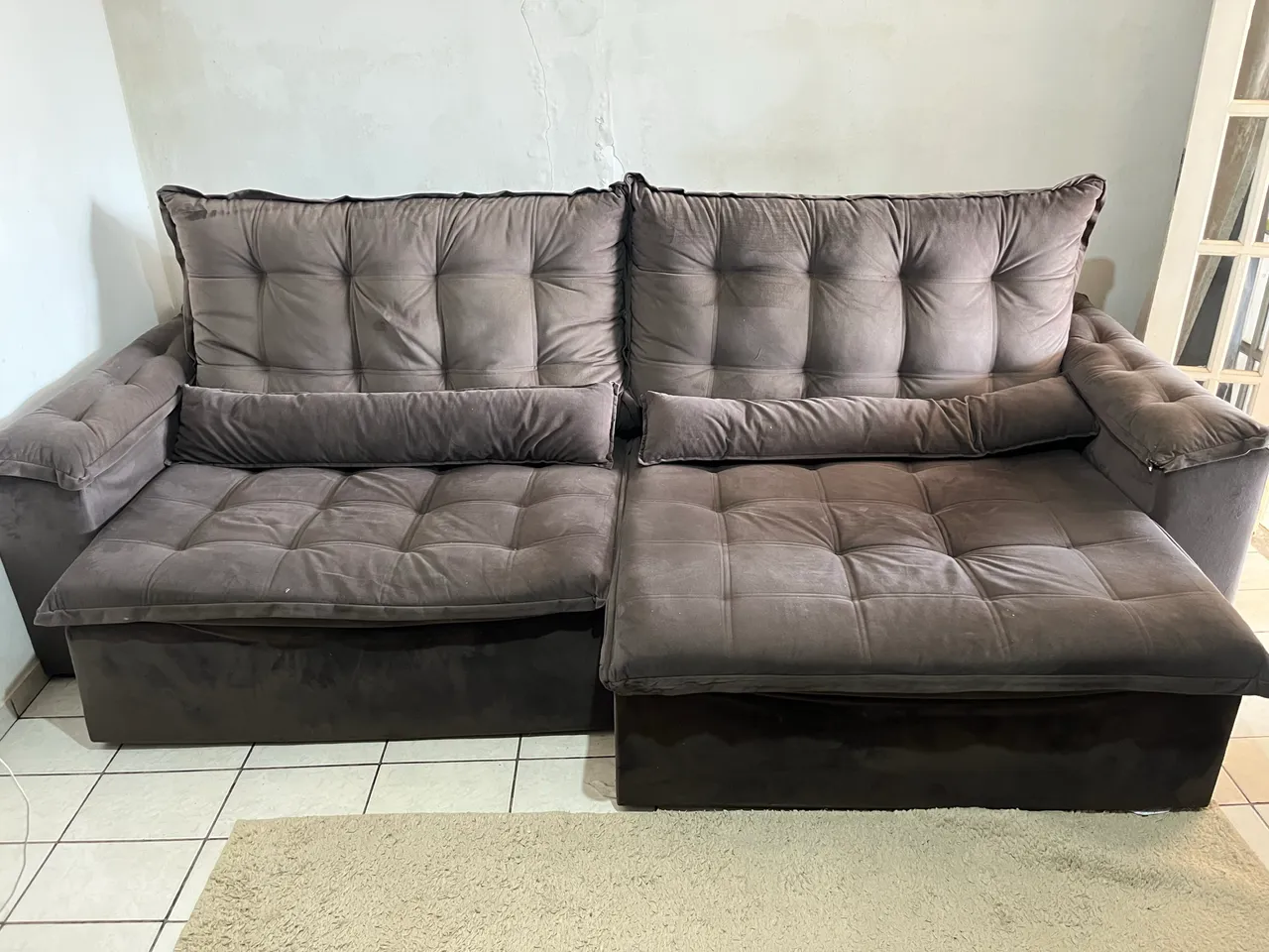 Vendo sofá retrátil, na cor marrom; pouco usado; com pequenas avarias.